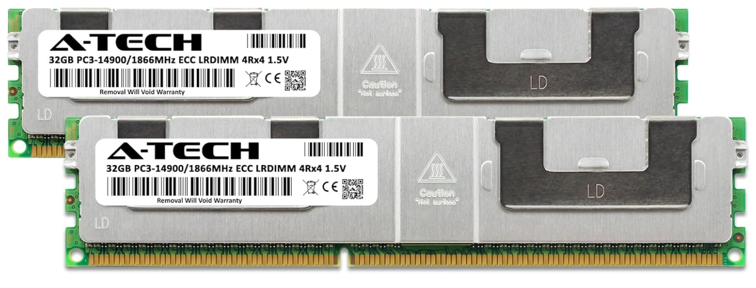 A-Tech 64GB Kit DDR3 1866MHz PC3-14900L ECC LRDIMM 4Rx4 Quad Rank 1.5V Load Reduced DIMM 240-Pin Server RAM Memory Upgrade Modules (A-Tech Enterprise Series)
