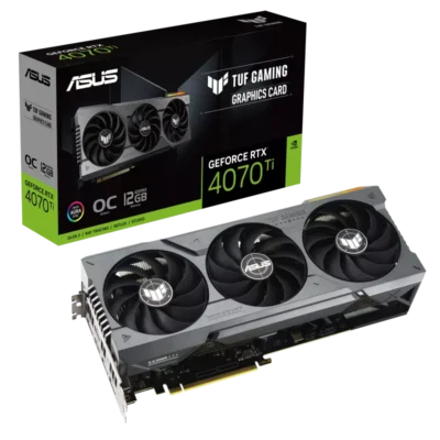 The ASUS TUF RTX 4070 Ti GAMING OC delivers exceptional 1440p gaming performance with NVIDIA’s Ada Lovelace architecture and 12GB GDDR6X memory. Built for durability with military-grade components and rigorous testing, it features a robust triple-fan cooling system with Axial-tech fans for optimal thermal management. The factory overclocked design provides enhanced performance out-of-the-box, while DLSS 3 technology dramatically boosts frame rates. Ray tracing capabilities enable stunning visual fidelity, and the reinforced metal backplate ensures structural integrity. With dual BIOS for performance/quiet modes, comprehensive connectivity options, and ASUS’s renowned build quality, this GPU offers premium gaming experiences with reliability that withstands intense gaming sessions.