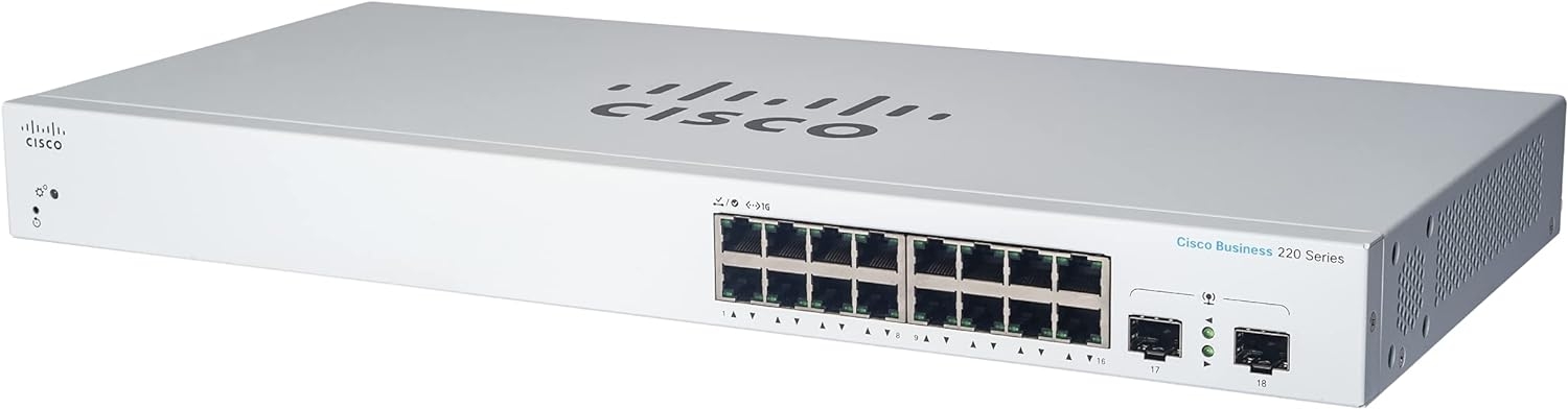 The Cisco Business CBS220-8P-E-2G Smart Switch delivers enterprise-grade networking for small to medium businesses in a compact, cost-effective package. This 8-port Gigabit Ethernet switch features Power over Ethernet (PoE) capability to power IP phones, wireless access points, and security cameras directly through network cables, eliminating the need for separate power adapters. Two 1G SFP uplink ports provide flexible fiber connectivity options for network expansion and high-speed backbone connections. The smart-managed functionality offers advanced features like VLAN support, Quality of Service (QoS), and security controls while remaining simple to configure. With its fanless design ensuring silent operation, robust security features, and Cisco’s reliable build quality, this switch provides professional-grade performance ideal for growing businesses seeking to upgrade their network infrastructure without complexity or excessive cost.