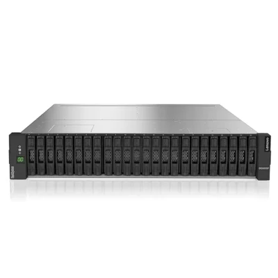 The ThinkSystem DE2000H Storage Array scales up to 96 drives with the attachment of Lenovo ThinkSystem DE120S 2U12 and DE240S 2U24 SFF Expansion Enclosures. It also offers flexible drive configurations with the choice of 2.5-inch (SFF) and 3.5-inch (LFF) form factors, 10 K rpm SAS and 7.2 K rpm NL SAS hard disk drives (HDDs), and SAS solid-state drives (SSDs).