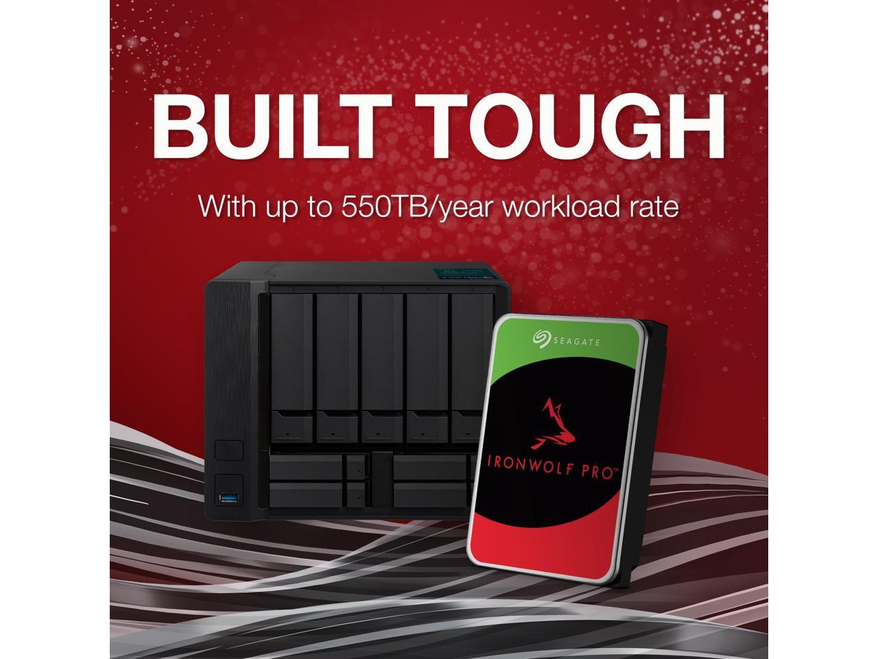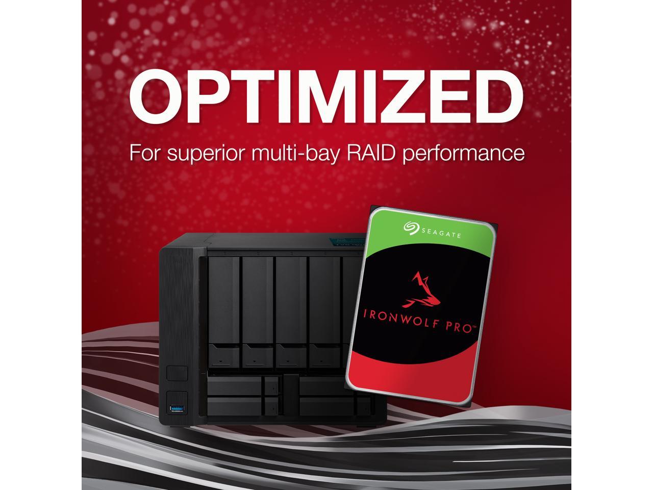 IronWolf Pro drives are engineered to deliver 247 performance, reliability, and dependability in multi-bay, multi-user commercial and enterprise RAID storage solutions. Built tough with conventional magnetic recording (CMR) technology, rotational vibration sensors, and AgileArray firmware for consistent, best-in-class performance and total cost of ownership (TCO).