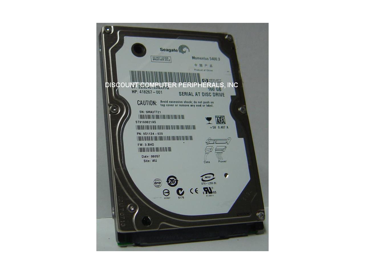 Seagate Momentus 5400.3 ST9160821AS 160GB 5400 RPM 8MB Cache SATA 1.5Gb/s 2.5″ Notebook Hard Drive Bare Drive