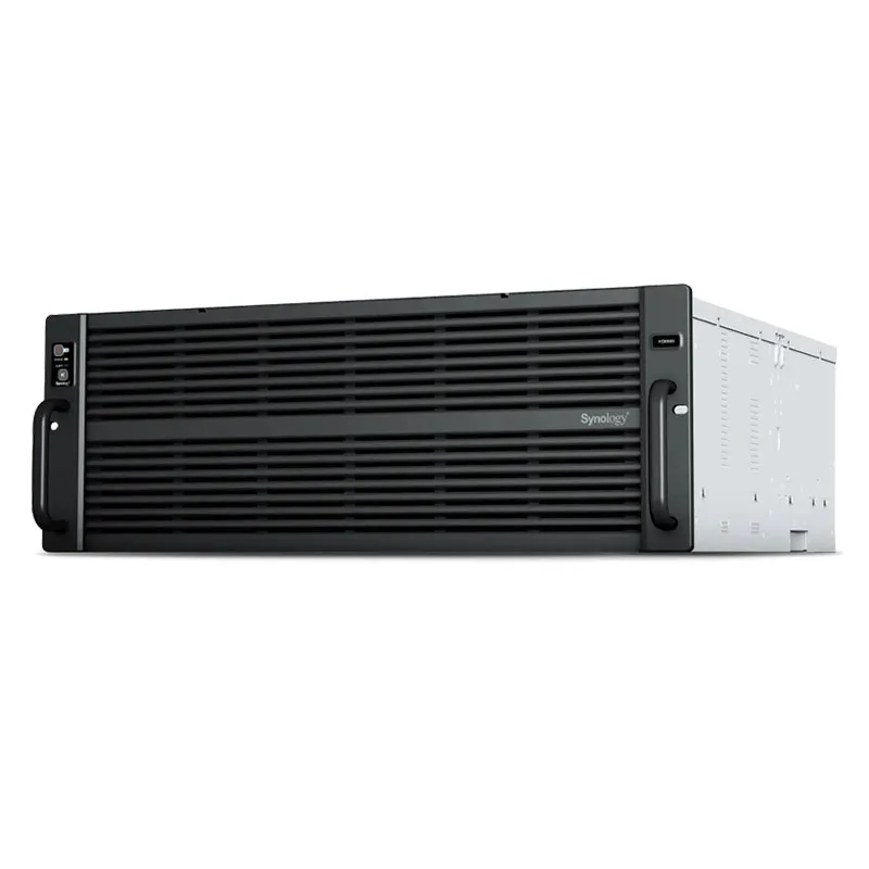 Enterprise-grade scalable storage solution delivering massive capacity in minimal rack space. Features 60 hot-swappable 3.5″ drive bays supporting up to 1.2PB raw storage in just 4U form factor. Built on DiskStation Manager (DSM) operating system providing comprehensive data management, backup, virtualization support, and cloud integration. Offers redundant power supplies, advanced RAID configurations, and enterprise-class reliability with 99.9% uptime. Scales seamlessly with additional expansion units. Ideal for data centers, media production, surveillance systems, and growing businesses requiring cost-effective petabyte-scale storage with enterprise features, simplified management, and future-proof expandability.