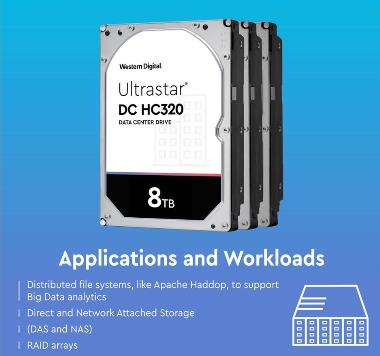 Available in capacities from 4TB, the DC HC300 series can be used for enterprise servers, backup systems, cloud and enterprise NAS that require 512-byte (512e) sector size for high performance and compatibility.
